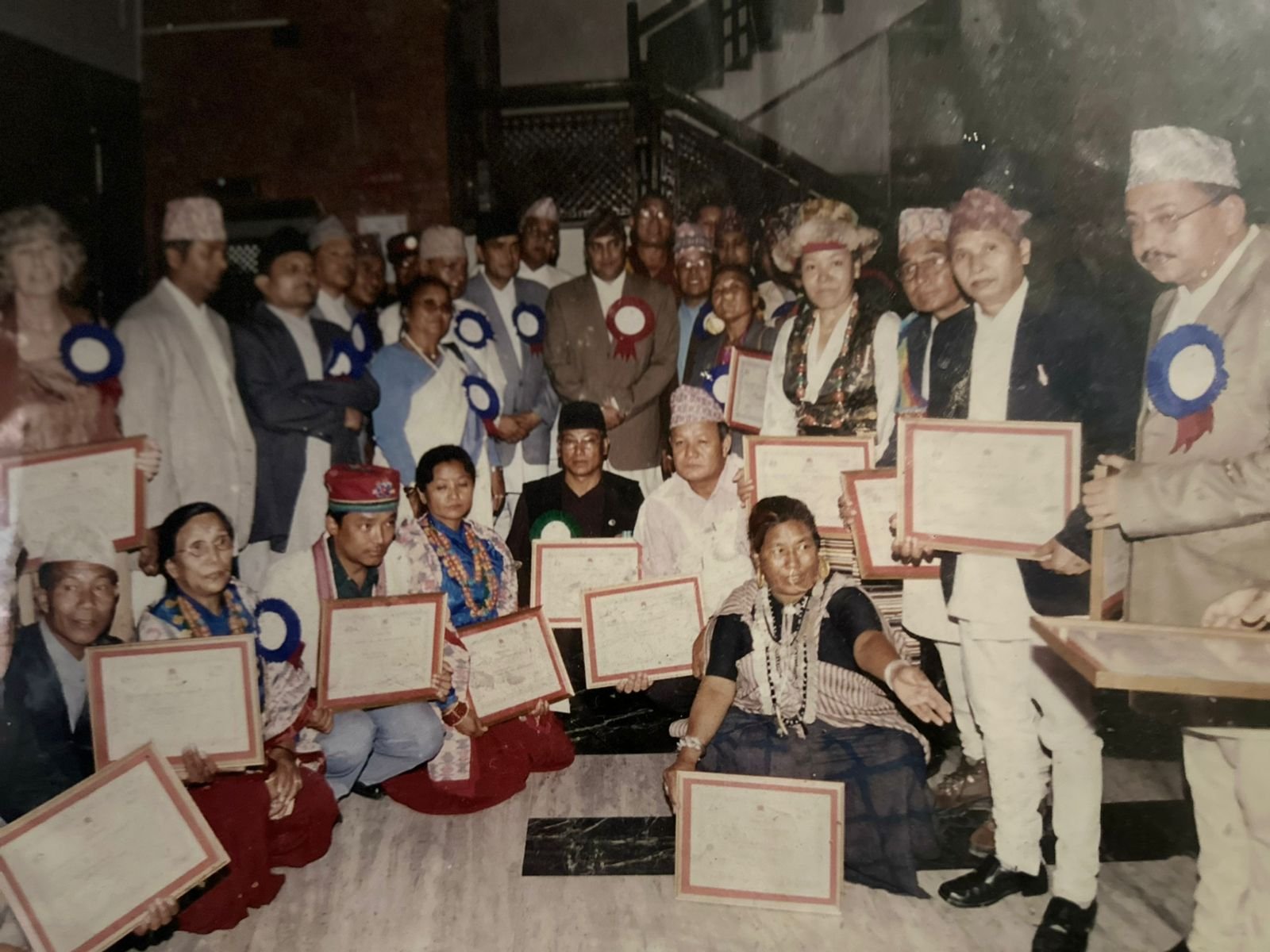 Picture with fellow Rastriya Panchayat members during an official certificate presentation conducted in the era of King Birendra’s leadership.